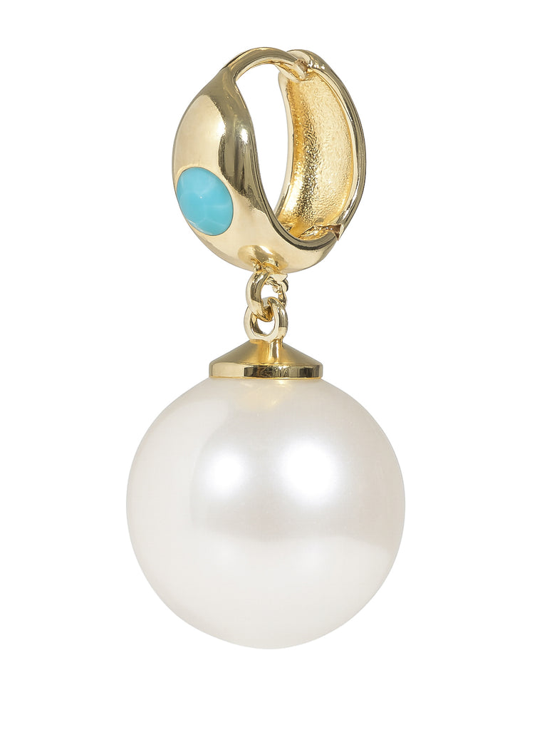 Diese goldfarbenen Creolen sind mit einer zarten türkisfarbenen Einlage versehen und tragen eine edle, große Perle als Anhänger. Das Design vereint maritimen Charme mit klassischer Eleganz und verleiht jedem Look einen Hauch von Luxus. Perfekt für elegante Sommer-Outfits oder festliche Anlässe.