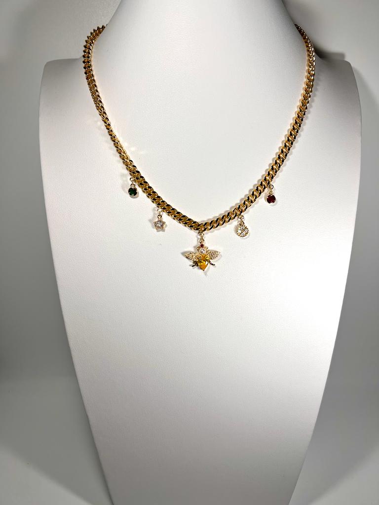 Eine aus Edelstahl gefertigte Halskette mit einen Grossen Biene als Blickfang . Und 4 andere Charms