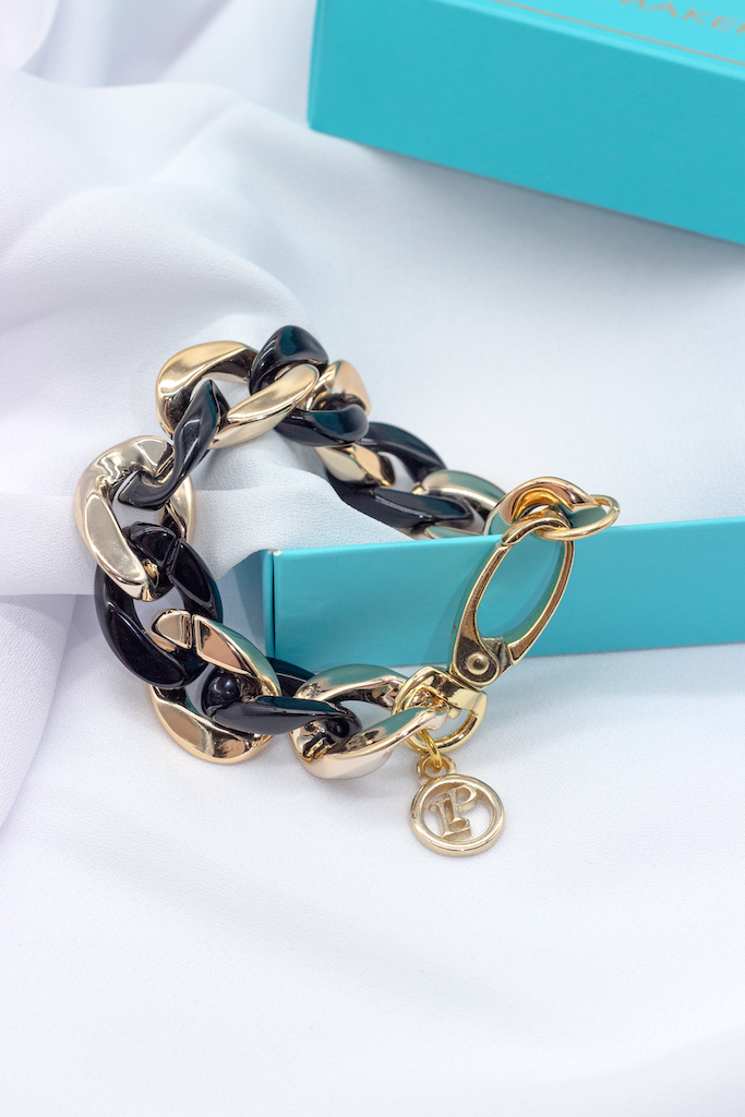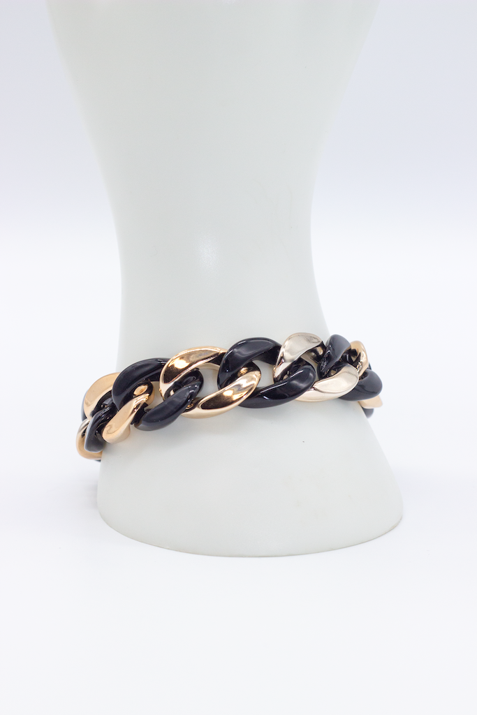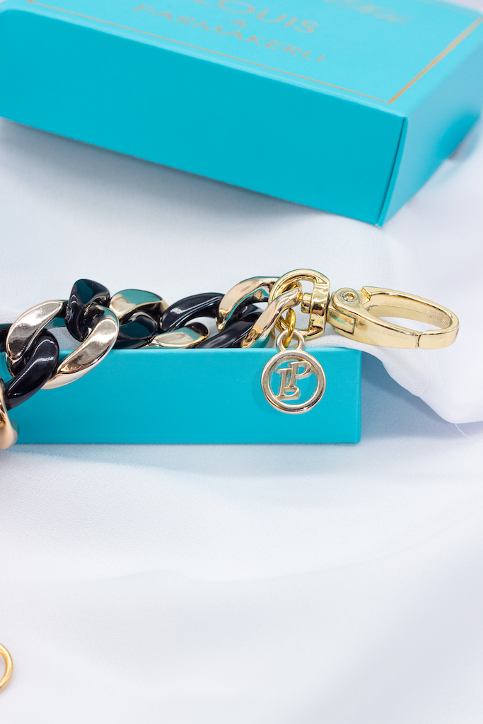 Einzigartiges 2-farbiges Edelstahl Armband in Schwarz/Gold von unserer Marke Louis & Parmakerli leicht zu Tragen und ein absoluter Hingucker.